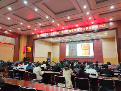 为扎实推进“清廉湖工大”建设,提升以案为鉴、以案明纪、以案促改警示教育效果,10月19日下午,图书馆党总支在一楼报告厅开展“镜鉴自省”警示教育暨禁毒宣传教育观影活动。观影活动由党总支书记陈燕主持,全体当班馆员参加了活动。