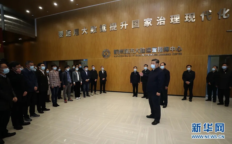 习近平接着来到杭州城市大脑运营指挥中心,观看了“数字治堵”、“数字治城”、“数字治疫”等应用展示,对杭州市运用城市大脑提升交通、文旅、卫健等系统治理能力的创新成果表示肯定。习近平指出,推进国家治理体系和治理能力现代化,必须抓好城市治理体系和治理能力现代化。运用大数据、云计算、区块链、人工智能等前沿技术推动城市管理手段、管理模式、管理理念创新,从数字化到智能化再到智慧化,让城市更聪明一些、更智慧一些,是推动城市治理体系和治理能力现代化的必由之路,前景广阔。习近平希望杭州在建设城市大脑方面继续探索创新,进一步挖掘城市发展潜力,加快建设智慧城市,为全国创造更多可推广的经验。