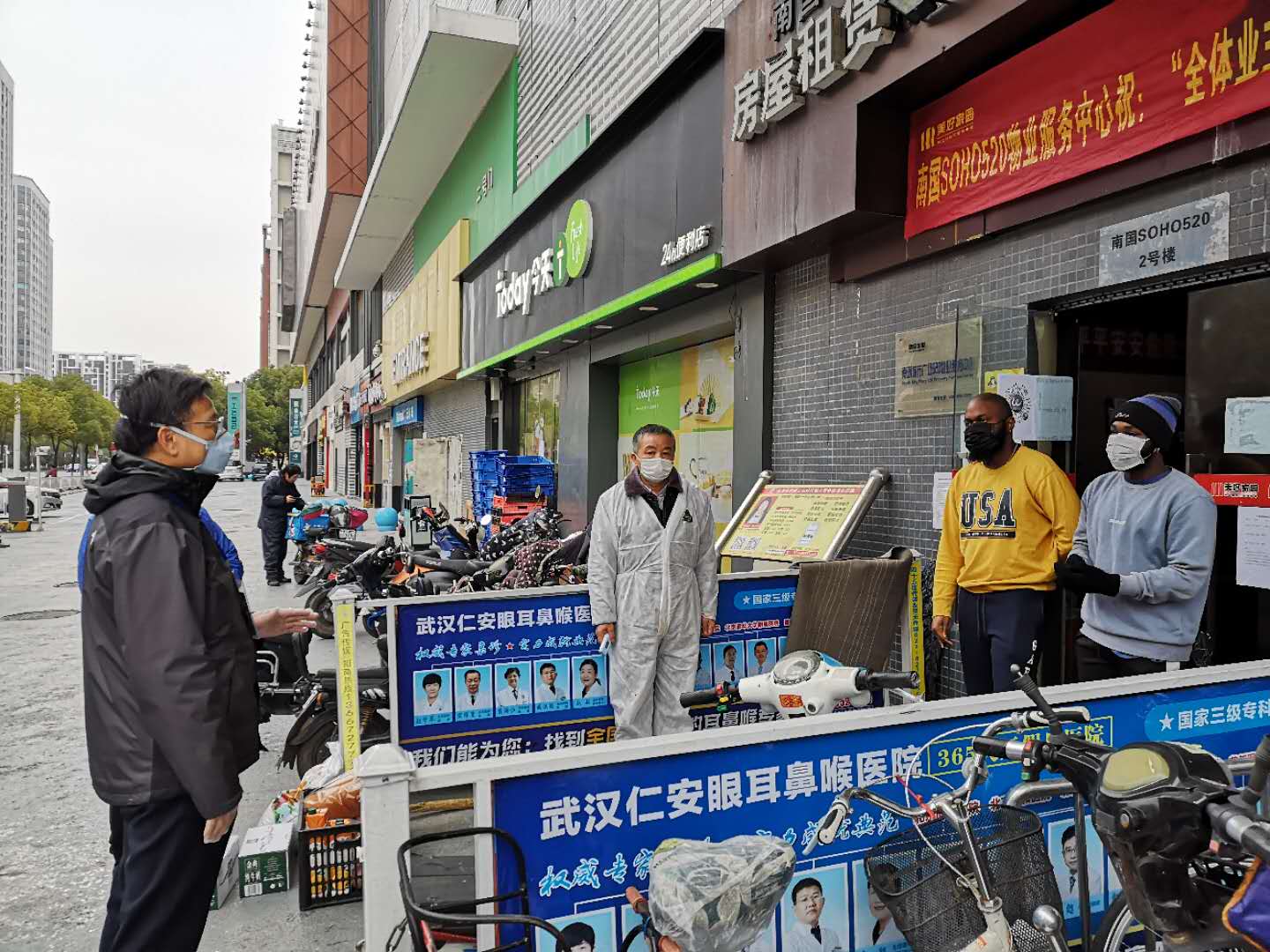 在南湖南国SOHO,李克勤看望了刚果籍学生MBOUMBA VITICK JOSEPH SAINT-GEORGES和NGOMBI FRANCK GHALLIS,详细了解了他们的生活、学习、室内锻炼及生活保障等情况,并向他们介绍了当前向好发展但依旧严峻的防疫形势,希望他们严格遵守社区防疫相关规定,继续提高防护意识,做好持久作战的准备,增强抗疫胜利的信心,共同战胜疫情。