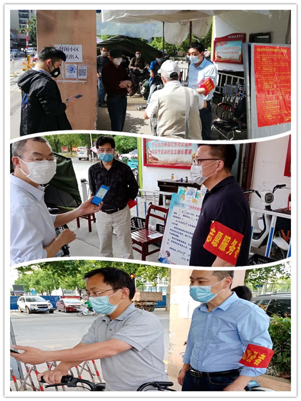 “您好,请先扫码,麻烦提供复工证明或者湖工小区通行证,谢谢。”学院党委书记王雷站在第一道卡口,引导居民有序扫健康码进入社区。本轮组织志愿服务通知下发后,王雷主动请缨,第一个报名,起到了良好的先锋示范作用。全院教职工报名踊跃,许多非党员和住在校外的教师也希望参与进来,贡献力量。学院根据教学、科研工作实际,最终选派了以院党委书记王雷、副院长、院党委纪委委员钟飞分别带领2个小组共8人,投入到社区疫情防控一线,这其中共有院党委委员4人,教工党支部书记2人。