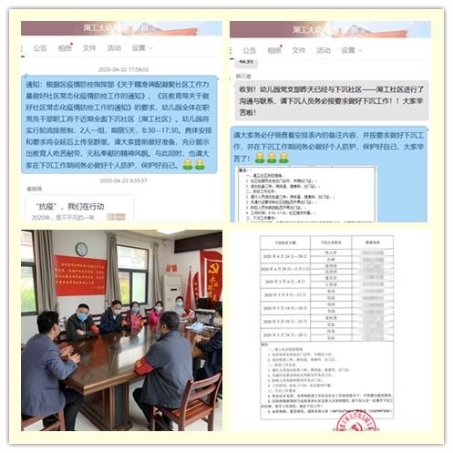 4月22日接到上级通知,幼儿园党支部迅速与结对社区(湖工社区)取得联系,于当天完成实地报到,就派出下沉人员的人数、工作内容等与社区进行了协商落实。园领导班子紧急召开班子会议,一致表示全力做好本项工作。幼儿园全体教职工积极响应参与,立刻组建了由14名党员干部职工组成的第一批下沉社区队伍。