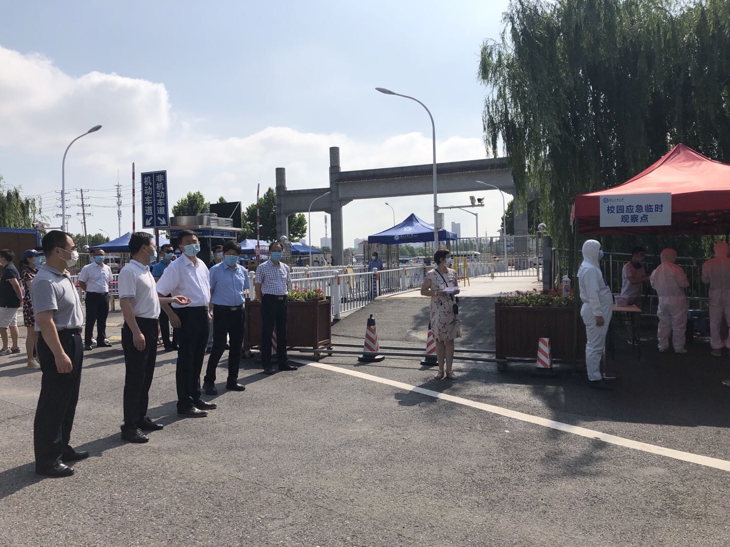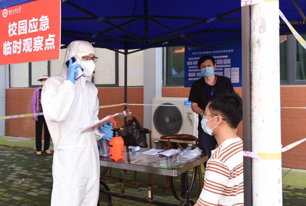 校领导李克勤、刘德富、龚发云、王侃、鄢烈洲一行先后到校大门口、东苑学生宿舍、3号教学楼、北区食堂等地,体验学生入校、入住宿舍、上课、食堂就餐等返校学习生活的各环节,并检查各环节中各项防控措施的具体落实情况,切实提高学校应对疫情突发情况快速反应、规范处置、联防联控的能力,做到校园疫情防控“早发现、早报告、早隔离、早治疗”。