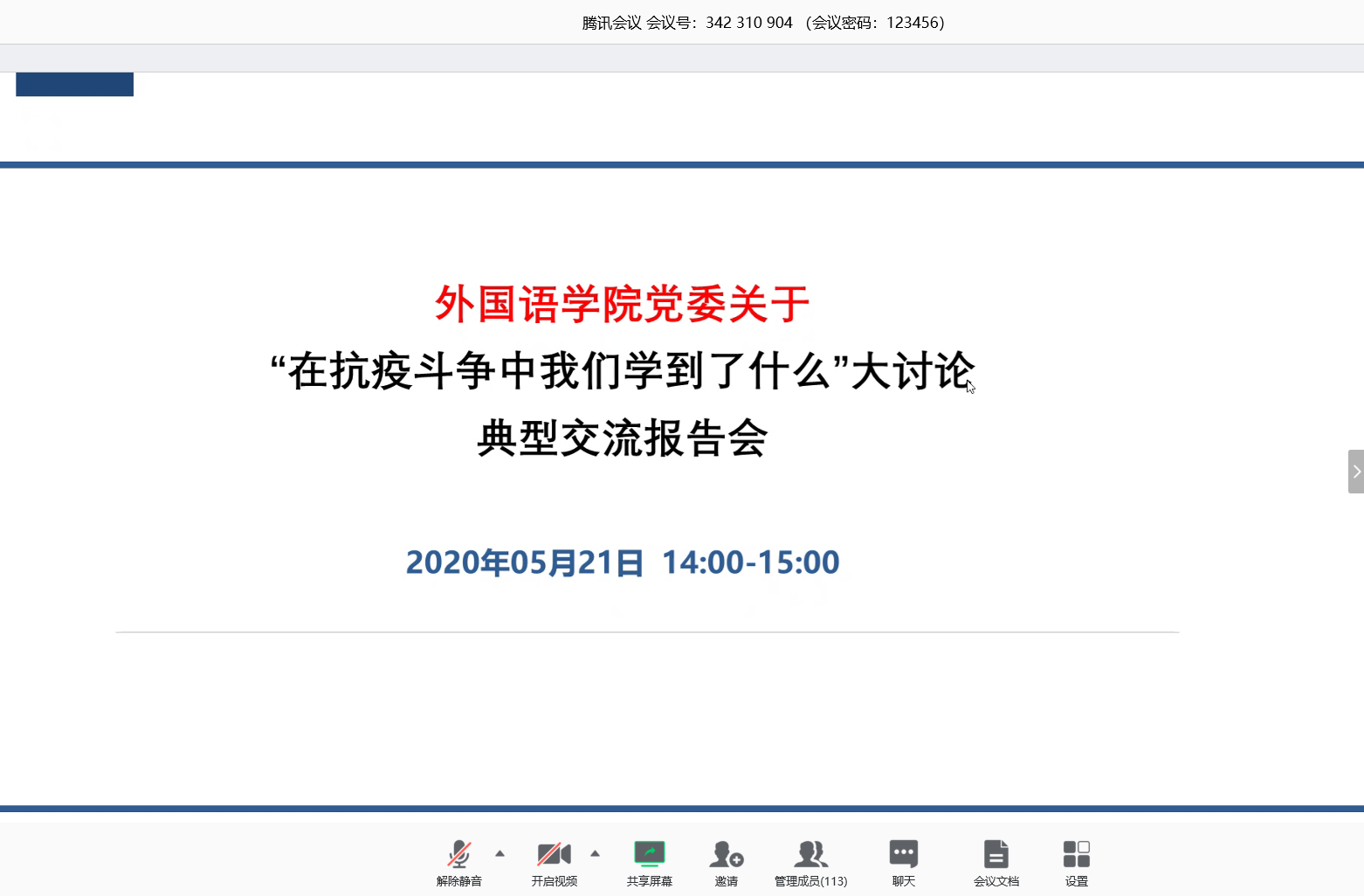胡传军(外国语学院党委副书记):抗疫斗争是一面镜子,检验的是“不忘初心、牢记使命”主题教育成果,中国共产党人的初心使命坚如磐石。
