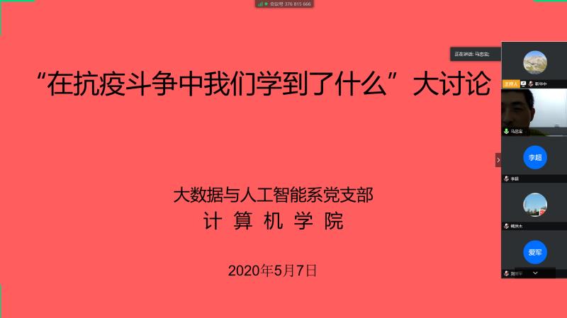 余汉卿(计算机学院学生):这次抗疫斗争,生动地体现了中国特色社会主义制度承载的人民至上的价值优势、党的集中统一领导的政治优势、全国一盘棋的合力优势和全面依法治国的法治优势。