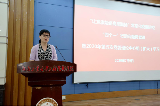根据“四个一”行动方案安排,7月9日,工程技术学院举办“让党旗始终高高飘扬”常态化疫情防控“四个一”行动专题微党课暨第五次党委理论中心组(扩大)学习会,学院领导及中层干部参会。会议由学院党委书记黄祖莉主持。