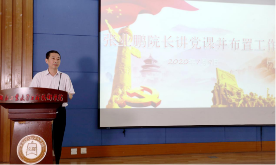微党课后,学院院长张业鹏讲授微党课并对近期工作进行了部署。他同时肯定了学院常态化疫情防的工作成效,对学生返校工作中全体教职工体现的责任与担当给予赞许。