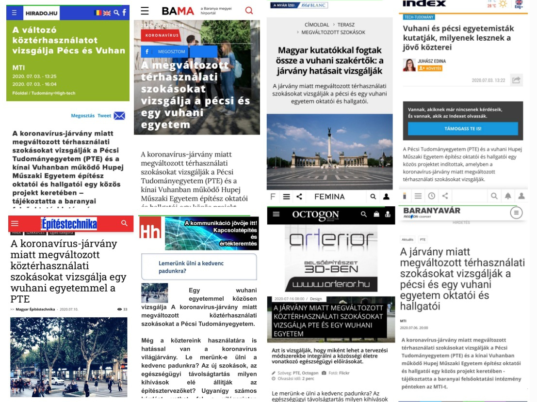 据悉,该主题设计活动《UNIVERSITY OF PECS INVESTIGATES CHANGED PUBLIC USE PATTERNS DUE TO CORONAVIRUS EPIDEMIC WITH HUBEI UNIVERSITY OF TECHNOLOGY IN WUHAN/佩奇大学与武汉湖北工业大学共研:疫情影响下公共空间使用模式的转变》,受到佩奇市市政府和匈牙利媒体极大关注,已被40多家匈牙利新闻媒体报道。