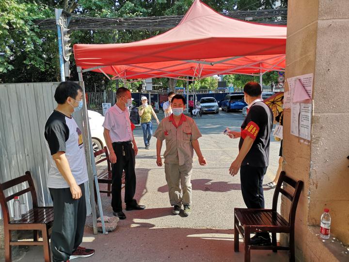 6月8日一大早,大家戴上红袖章,按照小区防控要求,认真值守,引导人员有序进入,值守期间志愿者多次帮助居民搬运快递、拿放外卖等,主动为社区居民排难解忧。其中,有一老人腿脚不便,第一支部书记何苗苗同志主动搀扶老年人下车。由于天气炎热,不少居民对出示健康码验证、体温测量多有抱怨,大家耐心做说服工作,悉心剖析当前疫情形势,以及遵守出入手续的必要性。