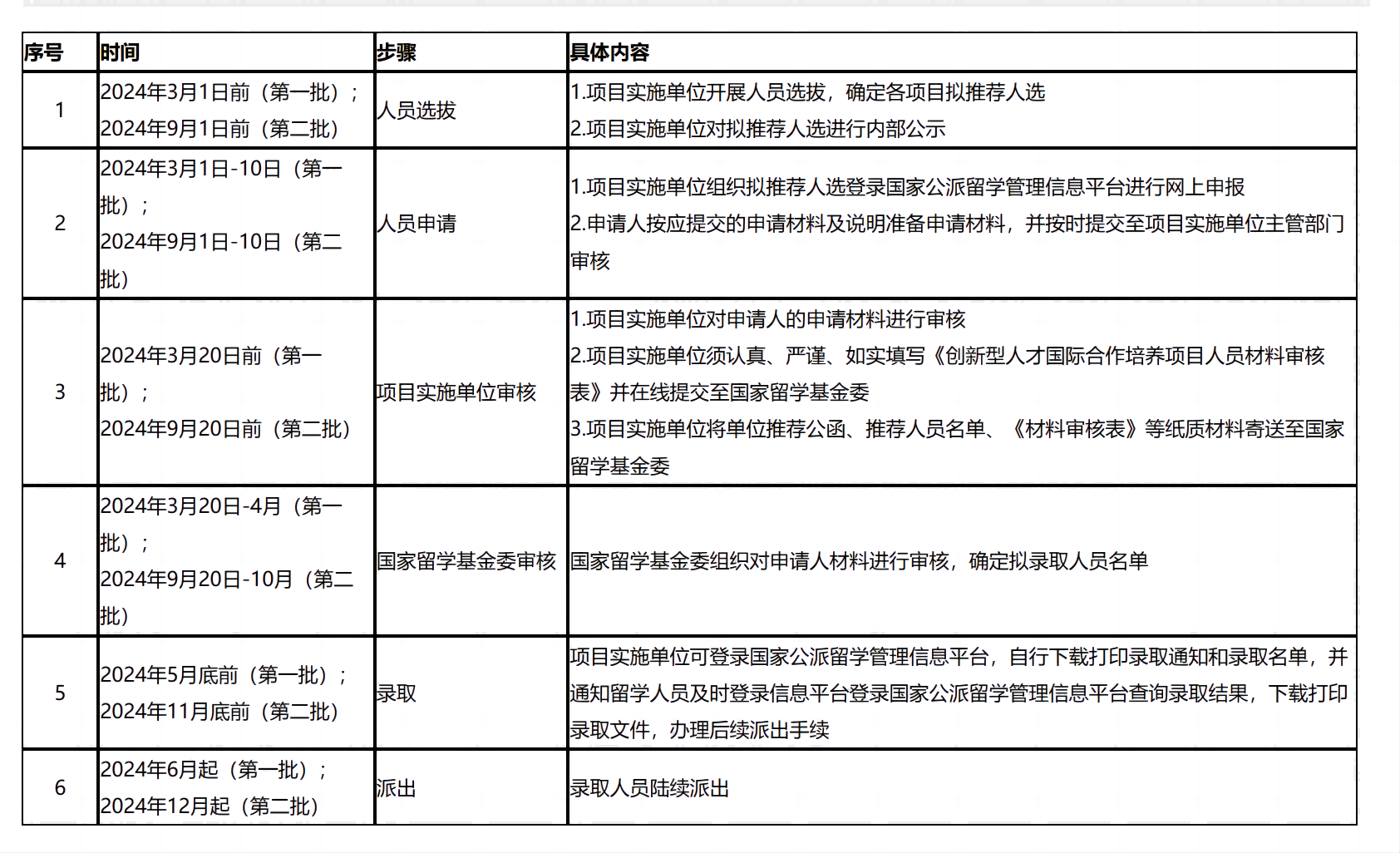 根据国家留学基金委《关于做好2024年创新型人才国际合作培养项目第一批人员申报工作的通知》,学校将启动本年度第一批项目人员遴选及选派工作,现将项目有关安排通知如下: