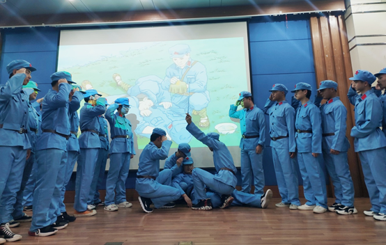 一段历史,波澜壮阔,震撼人心;一种红色,穿越历史,交织未来。来自20级九个班级的小演员们用精心策划、编排表演的节目和淋漓尽致的演技展示了一个又一个感人肺腑的故事。20级工管1班表演的话剧《五四热血》,介绍了为了祖国的和平奉献了自己生命的一群爱国青年,他们体现了一代青年人对国家的一片赤诚忠心,他们是民族的英雄,是中国的脊梁。20级土木4班的话剧表演《长征路上的金色鱼钩》,讲述了长征途中过草地的一段感人的故事。 同学们将“老班长”在艰难险阻的恶劣环境下对小战士的关心照顾、无私奉献、舍己为人演绎的淋漓尽致。20级工管职1班的话剧表演《狼牙山五壮士》,讲述了那一群狼牙山五壮士壮烈英勇牺牲的历史故事。他们用精湛的演技演绎出了烈士们宁死不屈、视死如归的革命精神,那简短有力的表演重温了那段不平凡的历史。