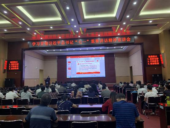 宣讲准确把握习近平总书记“七一”重要讲话重大意义、深入领会习近平总书记“七一”重要讲话新思想新观点新要求、贯彻落实习近平总书记“七一”重要讲话精神,牢记“为党育人、为国育才”初心使命四个方面进行了详细阐述,聚焦全面建成小康社会的伟大成就和历史意义,总结中国共产党百年的光辉历程、伟大成就和宝贵经验,详细解读伟大建党精神,对大家深刻理解、准确把握、全面贯彻“七一”讲话精神起到了极大地推动和促进作用。