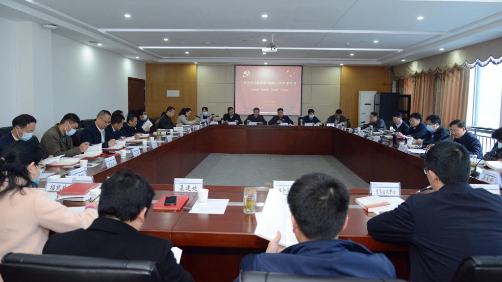 4月8日下午,校党史学习教育读书班第三次集中学习在行政楼二楼2号会议室举行,专题研学《中国共产党简史》,校党委副书记、校长彭育园主持会议,在校全体校领导出席会议。