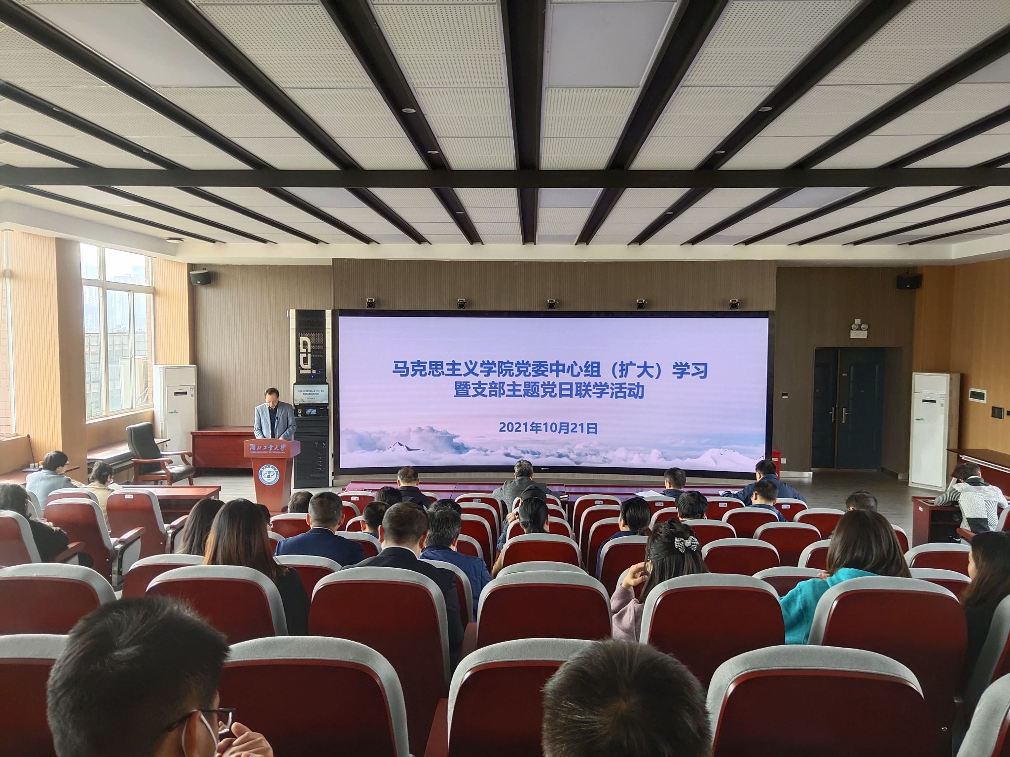10月21日下午,马克思主义学院举行党委中心组(扩大)学习暨支部主题党日联学活动,院党委书记李学锋主持学习,全院教职工参加会议。