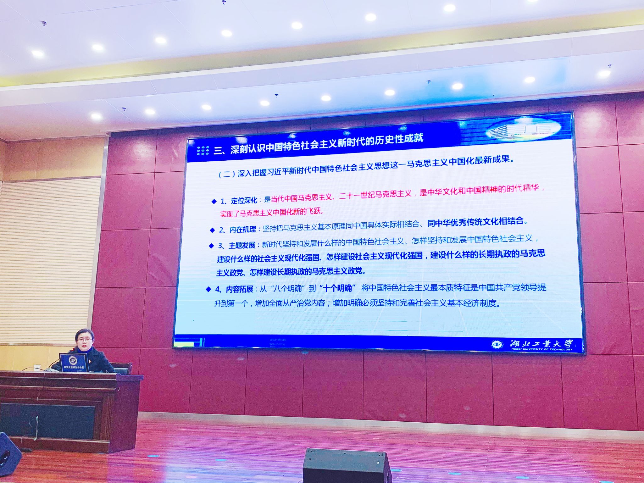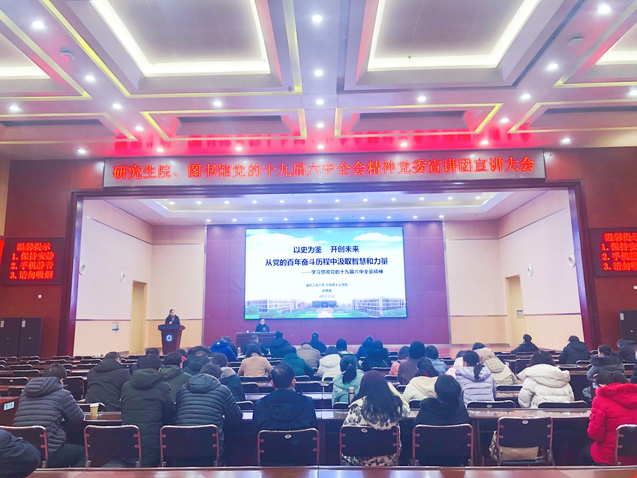 1月11日上午,研究生院和图书馆开展党的十九届六中全会精神宣讲学习。马克思主义学院骨干教师张艳丽以《以史为鉴,开创未来,从党的百年奋斗历程中汲取智慧和力量—学习贯彻党的十九届六中全会精神》为题作宣讲报告。报告会由研究生院党委书记杨晓云主持,研究生院、图书馆全体班子成员和教职工参加。