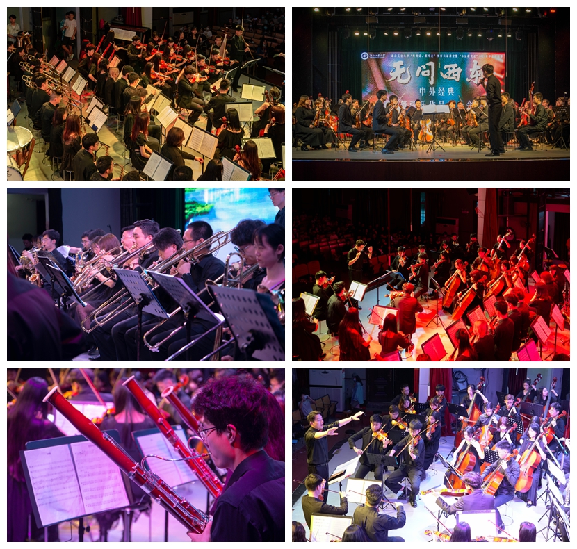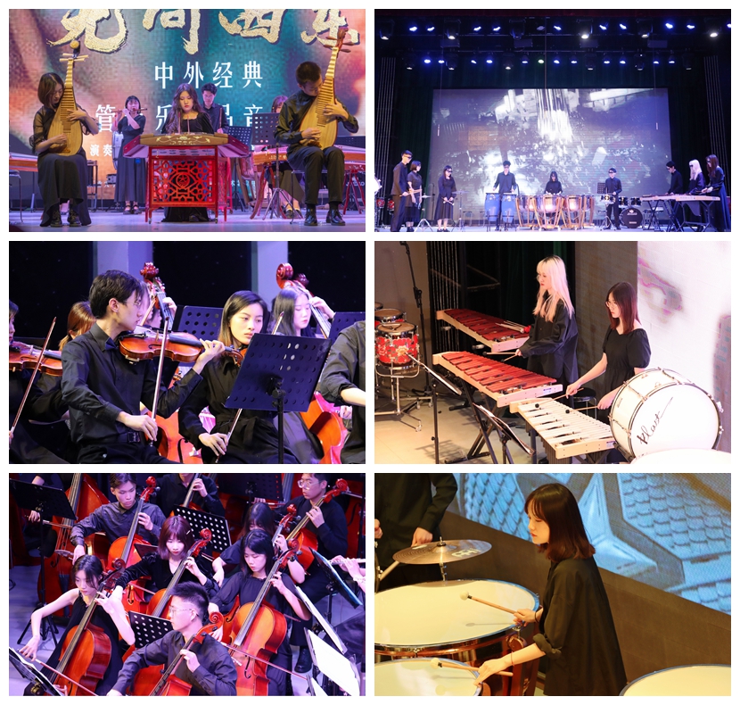 根据疫情防控的要求,本场音乐会采取线上线下同步进行的方式举行,演出在气势恢弘的交响诗《红旗颂》中拉开序幕,激扬的旋律、振奋人心的演奏,迅速将观众拉回到了那段激情燃烧的岁月。《钢铁洪流进行曲》《科技先锋》《敦煌新语》等一首首红色经典名曲,饱含了浓浓的爱国主义情怀,催人奋进,震撼人心,激发了青年学子们的爱国心、报国志;民族经典作品《赤壁》《鸿雁》《春江花月夜》,生动展示了中华优秀传统文化的博大精深和民族民间音乐的多样魅力;《红楼梦》《西游记》《流浪地球》《沧海一声笑》《燃情岁月》《天堂电影院》等经典影视名曲,一首首熟悉的旋律引发了同学们的强烈共鸣。本场音乐会既是一场演奏会,还是一堂生动的美育实践和音乐大课堂,向现场和线上的同学们生动介绍并展示了西洋交响乐队、中国民乐团的编制、声部分类、乐器特点、调式风格等音乐常识,以别开生面的现场教学帮助同学们提升艺术修养和审美能力。