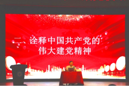 严雄飞教授以“领会‘七一重要讲话’精髓”为主题,带领大家回顾了百年庆典讲话,诠释中国共产党的伟大建党精神。从党的首次“生日”,到全党第一次大规模庆祝党的生日,再到隆重庆祝中国共产党成立100周年。伟大建党精神,思想精辟、内涵丰富、意义重大、意境深远,深刻揭示了中国共产党的特质,是我们全面认识和准确把握中国共产党为什么能的一把金钥匙。严雄飞在讲话时多次提到新时代青年应该努力成才,牢记初心使命,坚定理想信念,践行党的宗旨,永远保持同人民群众的血肉联系,始终同人民想在一起、干在一起、风雨同舟、同甘共苦、继续为实现人民对美好生活的向往不懈努力,努力为党和人民争取更大光荣。