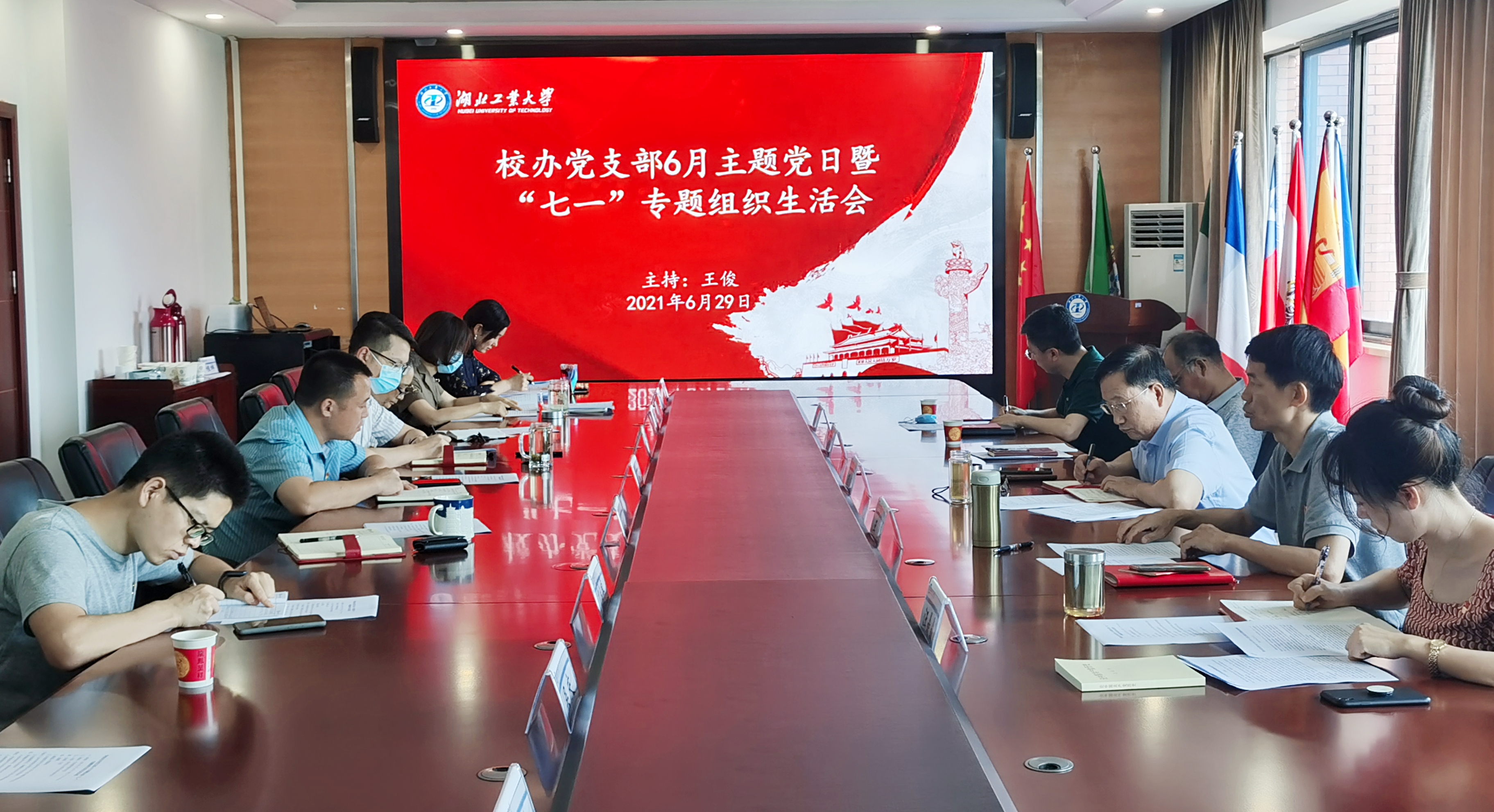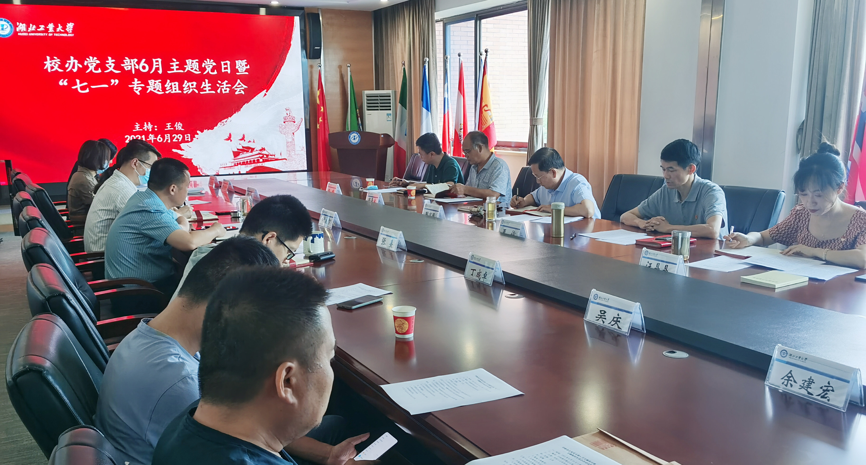 6月29日下午,学校办公室党支部召开“七一”专题组织生活会,会议由机关党委书记王俊同志主持,校党委副书记、校长彭育园作为支部普通党员参加了组织活动。