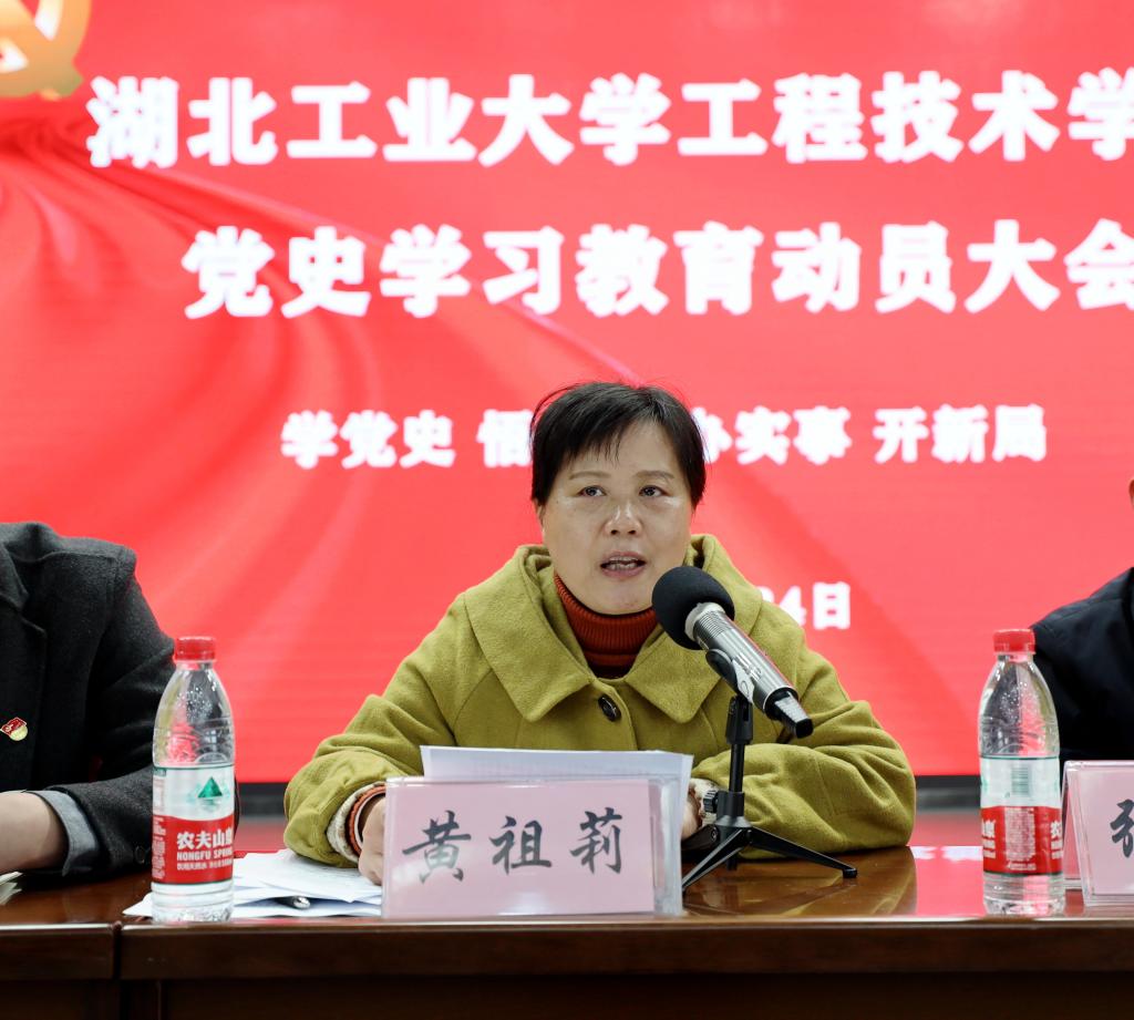 3月24日下午,湖北工业大学工程技术学院在博雅园三楼报告厅召开党史学习教育动员大会。学院负责人作动员讲话,对学院党史学习教育作全面动员部署。