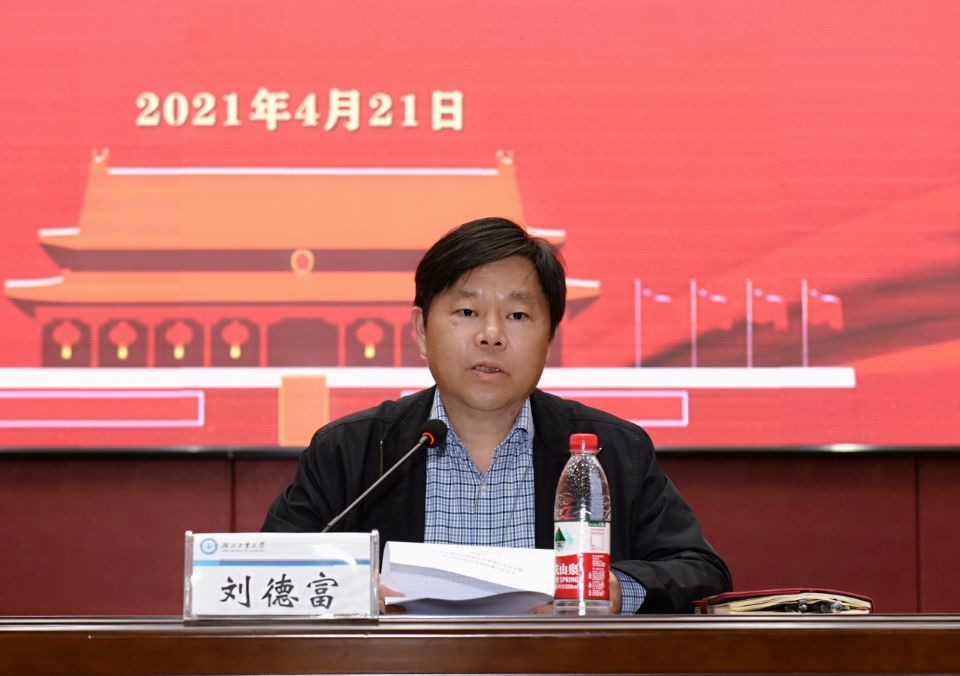 4月21日下午,校党委在图书馆报告厅举行党史学习教育省委宣讲团报告会暨党史学习教育读书班第四次集中学习,校党委书记刘德富主持会议并讲话,在家全体校领导出席会议。