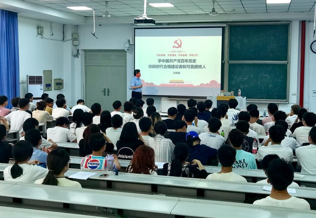 “要做到学史明理、学史增信、学史崇德、学史力行,教育引导全党同志学党史、悟思想、办实事、开新局”。刘德富围绕习近平总书记在党史学习教育动员大会上的重要讲话,阐释了党史学习教育的目的和重大意义。他指出,新时代的大学生要认真学习党的历史,努力从百年党史中汲取智慧和力量,这对于继承和发扬党的优良作风和光荣传统,提高政治素质、提升认知能力、培养处理实际问题的能力等都是十分必要和有益的。