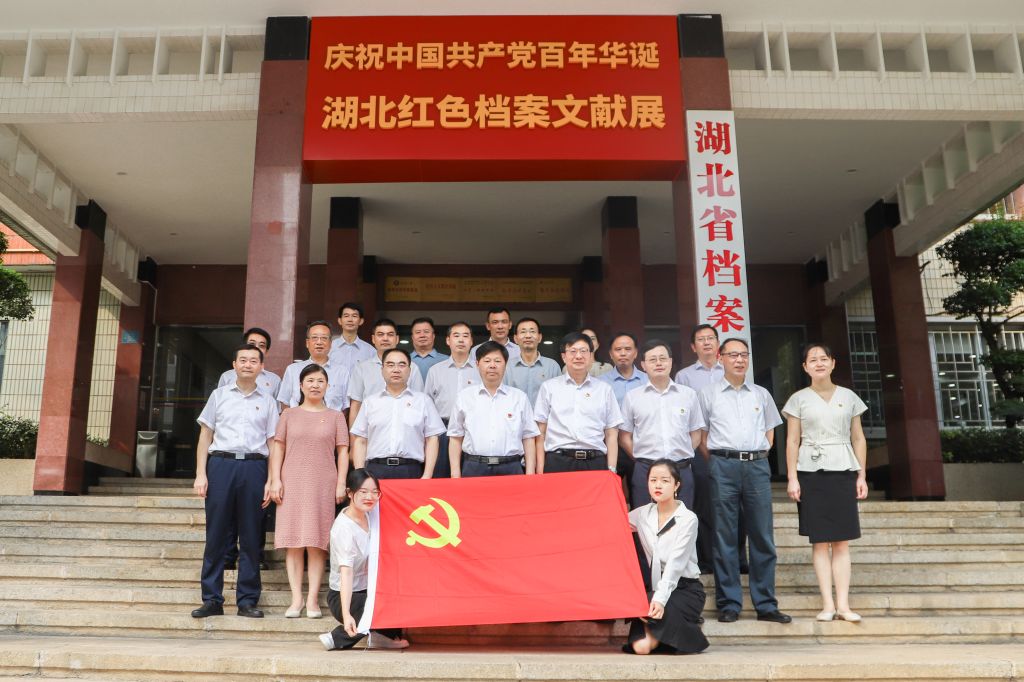 为深入学习贯彻习近平总书记“七一”重要讲话精神,不断推动党史学习教育走深走实,9月28日下午,校党委理论学习中心组举行2021年第14次集中学习暨党史学习教育现场教学活动。校党委书记刘德富带领在家校领导、党委常委、党委中心组成员、干部和学生党员代表,前往湖北省档案馆参观“红旗飘飘——庆祝中国共产党百年华诞湖北红色档案文献展”。省档案馆副馆长李宗春陪同参观。