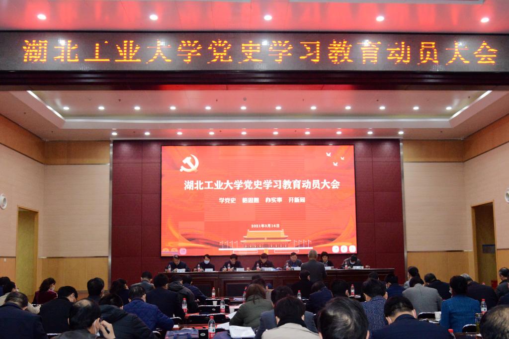 3月16日下午,湖北工业大学在图书馆一楼报告厅召开党史学习教育动员大会。校党委书记刘德富作动员讲话,对学校党史学习教育作全面动员部署。校党委副书记、校长彭育园主持会议,全体在校校领导出席会议。