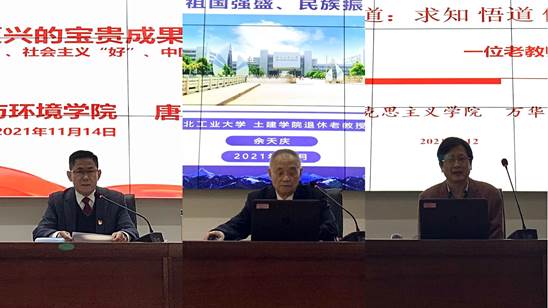土建学院87岁退休教授余天庆以“踏着革命先驱足迹,立志为祖国强盛、民族振兴献身”为主题,介绍了他人生四个阶段的故事。余教授以“老牛亦解韶光贵,不等扬鞭自奋蹄”鼓励青年学子们发扬奋斗精神,在青春年华争做堪当大任的时代青年。马克思主义学院万华炜教授以“大学之道:求知、悟道、修身”为主题,向学生们介绍了大学期间“求知、悟道、修身”的重要意义和方法,希望大学生在大学期间早日定下规划,逐梦远方。