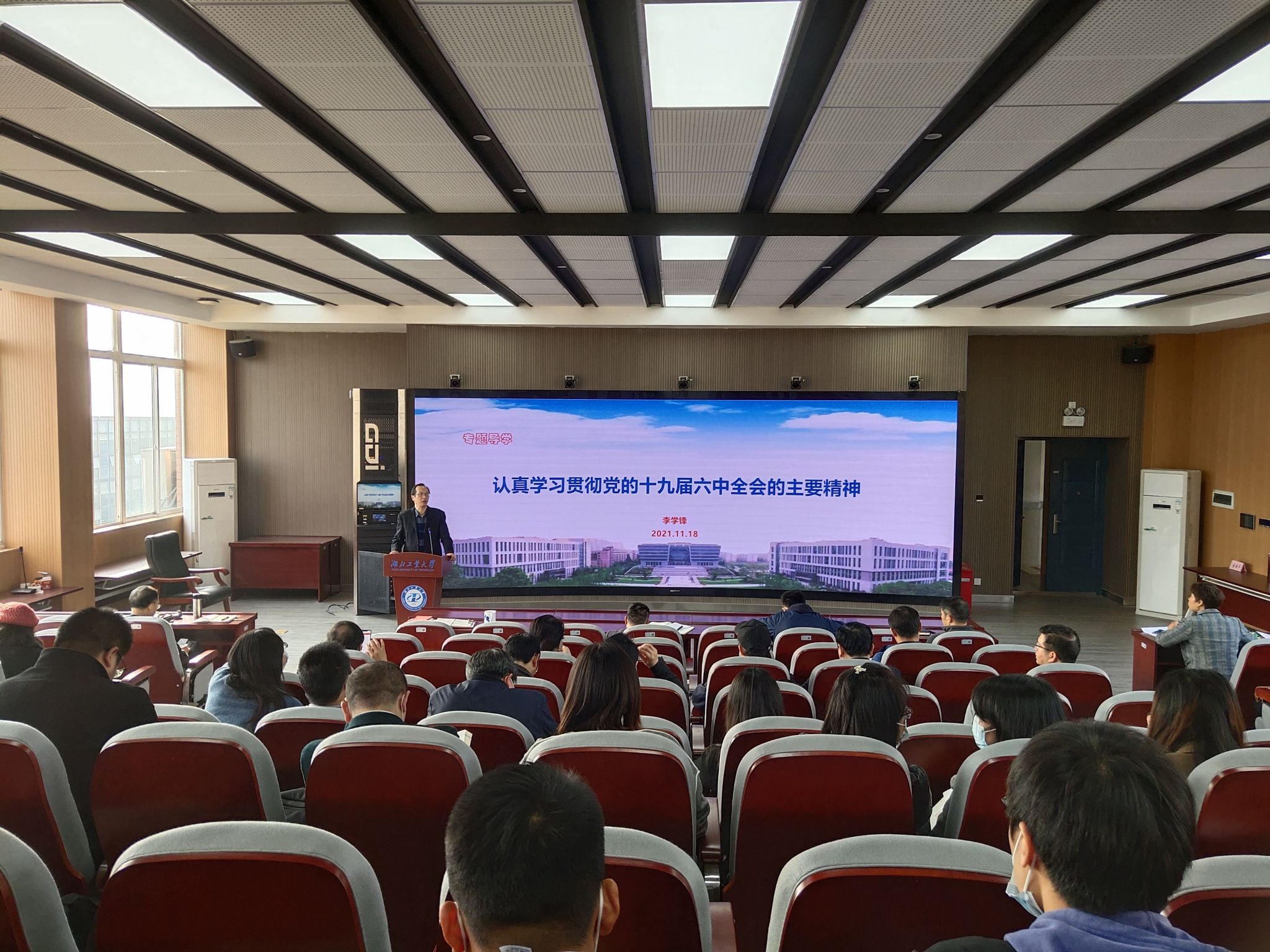 11月18日下午,马克思主义学院举行党委中心组(扩大)学习暨教职工政治学习会,认真学习领会党的十九届六中全会精神,畅谈如何运用全会精神来武装头脑、指导实践、推动工作。学院全体教师参加学习活动,院党委书记李学锋以《认真学习贯彻党的十九届六中全会的主要精神》为题作了领学报告。