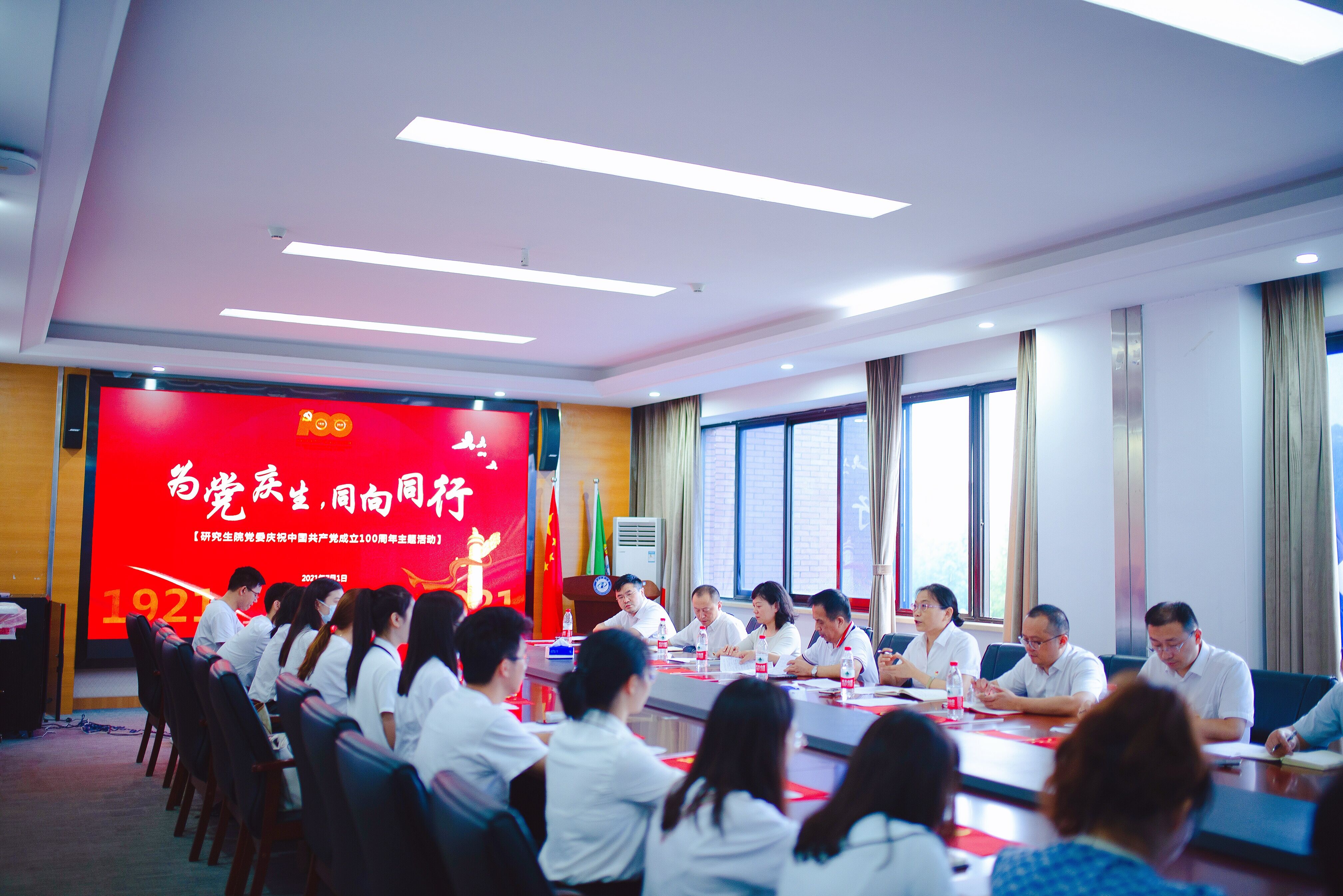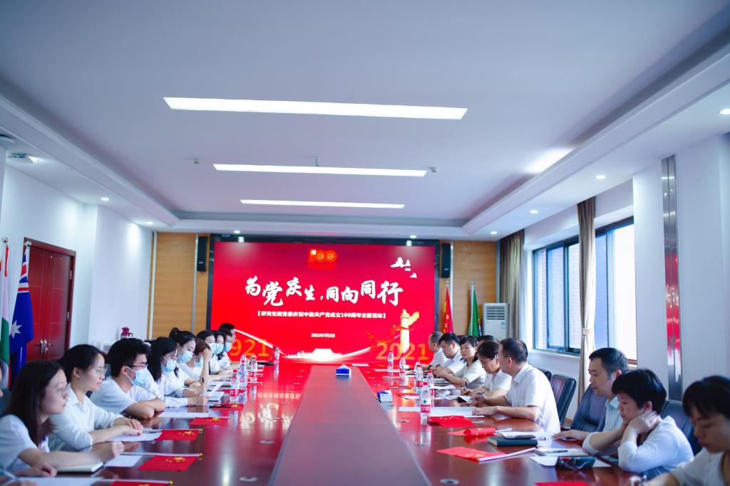 7月1日下午,为庆祝我党百年华诞,研究生院在行政楼四楼会议室组织开展“为党庆生,同向同行”活动。研究生院领导班子、全体教工党员以及各培养单位研究生党员代表共计31名师生党员出席参加本次庆祝活动。