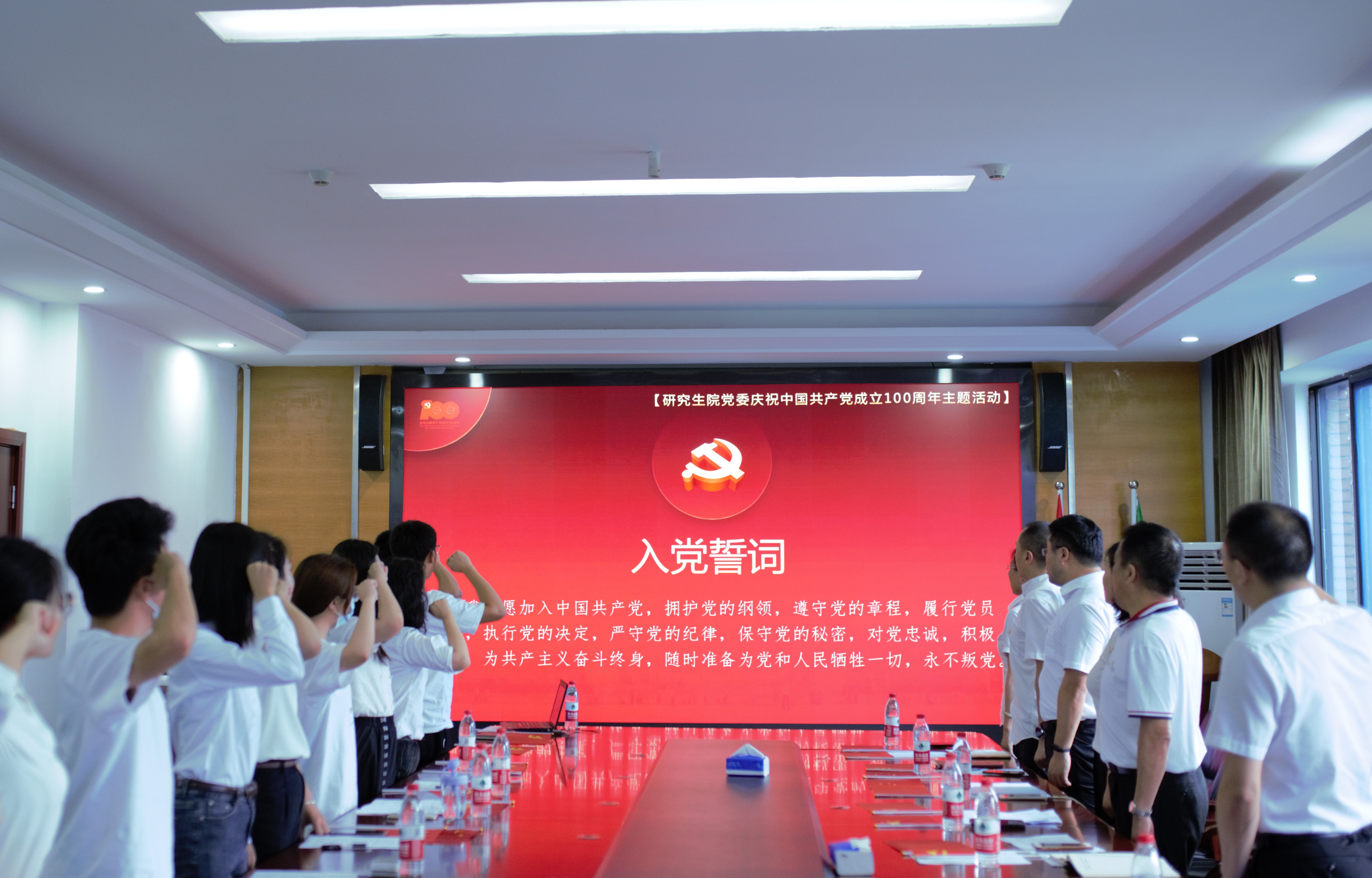 研究生院负责人表示,建党百年,初心历久弥坚,功勋彪炳史册。今天研究生院特意组织此次活动献礼我党百年华诞。希望本次活动能对大家起到三个作用。一是要感党恩。生在红旗下,长在春风里,大家都沐浴在党的光辉下,作为新时代青年党员,大家要感党恩。二是要听党话。我们党是伟大的党,是光荣的党,是正确的党。作为高校教师和当代青年,我们都应该听党话,用党的思想和理论来武装和提升自己。三是要跟党走。今天我们再次重温了入党誓词,希望在后续的工作和学习中,大家用实际行动来证明许党报国、不负人民的决心,保证和党同心同德、同向同行、同频共振,以昂扬的精神状态奋力前行,共同推动学校研究生教育高质量发展。