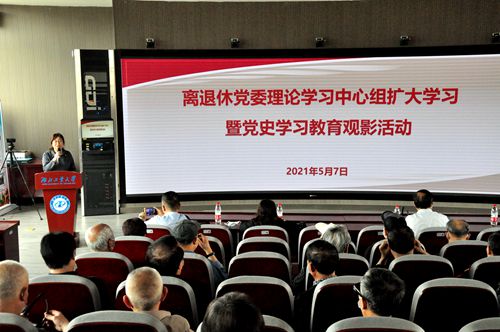 5月7日上午,离退休党委理论学习中心组扩大学习暨党史学习教育观影活动在马克思主义学院“虚拟仿真思政课体验教学中心”开展。离退休党委书记夏瑜主持学习与观影活动,离退休党员代表及离退休工作处全体党员近60人参加学习。