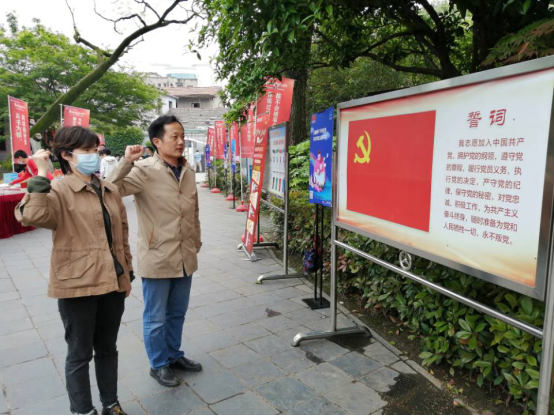 国贸系教师党支部以学院刘宇和胡渊两位老师入党契机,在参观现场为两位老师过了一个别开生面的政治生日。两位老师面向党旗,举起右拳,重温入党誓词,并各自对入党以来的学习与成长、体会与感悟进行了详细汇报与诚恳分享。