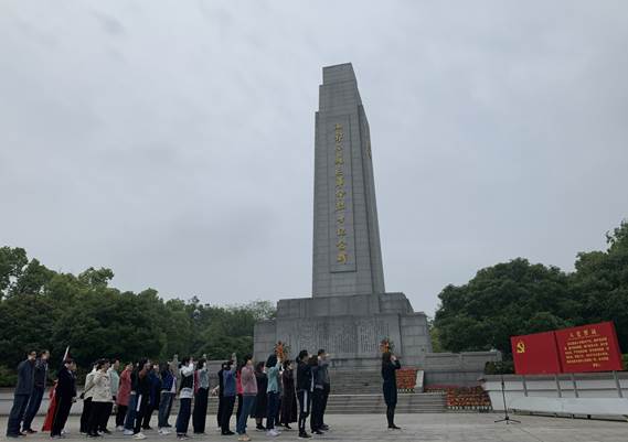 在烈士陵园,党员们瞻仰了湘鄂西苏区革命烈士纪念碑,向烈士默哀,在图书馆党总支书记陈燕领誓下,全体党员面对党旗,举起右拳,重温入党誓词,表达初心如始,要听党话,永远跟党走。