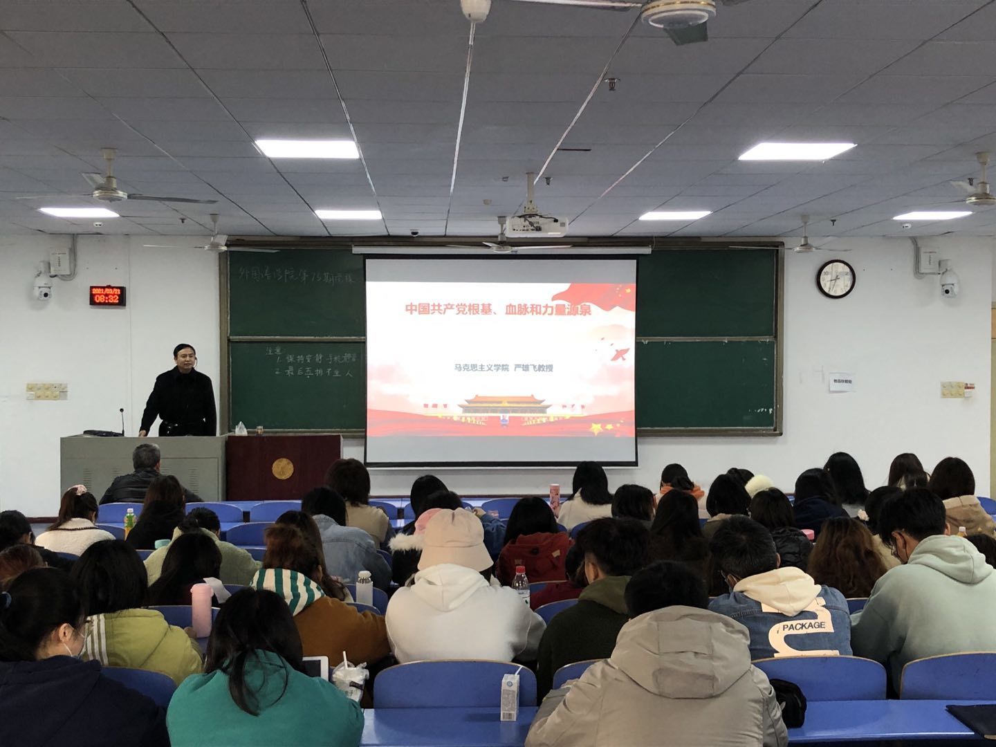开班仪式结束后,严雄飞教授以“中国共产党根基、血脉和力量源泉”为主题进行授课。严教授从“习近平总书记党史学习教育的讲话精神”“中国共产党百年奋斗历程及历史性贡献”“人民是中国共产党的根基、血脉和力量源泉”“矢志践行初心和使命的百年历程”和“守护好党的根基和血脉”等五个方面进行了深入浅出地讲解。严教授指出,要学好党史,就要科学把握党史的主题和主线、主流和本质,要做到学史明理、学史增信、学史崇德、学史力行。在学习党的历史和知识的同时,更要关注党的最新动态,了解学习党的提议和主张,时刻跟党走,做到悟思想、办实事、开新局。