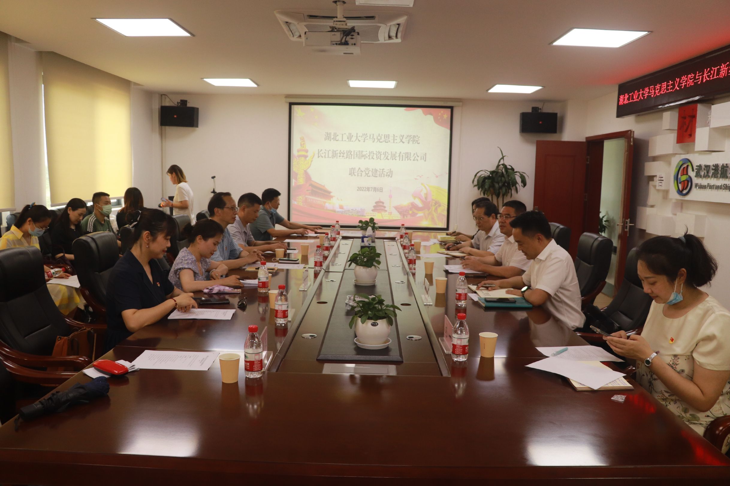 7月6日下午,马克思主义学院与湖北港口集团长江新丝路公司开展联合党建活动暨支部“三走进”企业行的首次活动。马克思主义学院党委书记李学锋、长江新丝路公司党总支书记、董事长贾峻出席活动。学院第二教师党支部和第四教师党支部全体党员参加了联合党建活动。