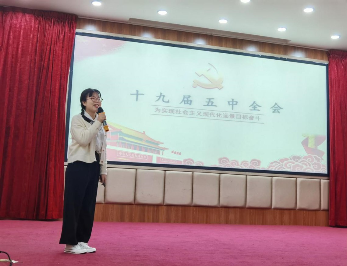 马克思主义学院副院长石裕东老师做发言总结。他表示,本场比赛每位参赛选手的演讲形式新颖,以红色之歌、红色故事等不同形式讲述党史,展现了选手的独特个性,很好地把演讲艺术与党史学习结合起来,充分展现了湖工大学子昂扬向上的精神面貌。