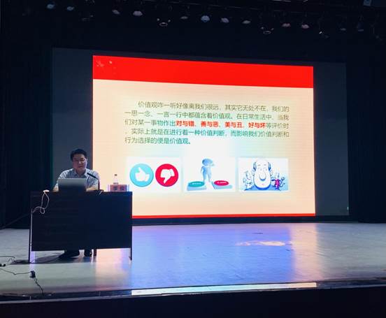 相关负责人以“弘扬与践行社会主义核心价值观”为主题,结合学生工作内容以及时事热点,讲述了核心价值观的内容和由来,并逐一分析了24字核心价值观的内涵。他要求同学们自觉弘扬和践行社会主义核心价值观,做到有理想、有追求、有担当、有作为、有品质、有修养。