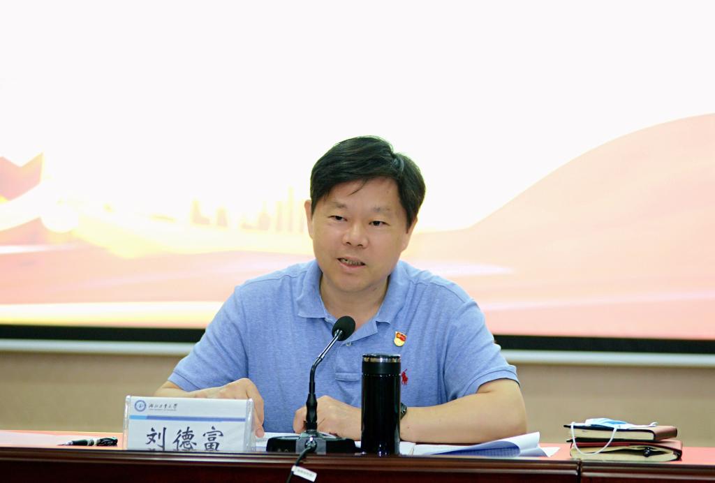 刘德富强调,学习宣传贯彻习近平总书记“七一”重要讲话精神是当前全校上下一项重要的政治任务,也是党史学习教育第二阶段的核心内容,各级党组织、各单位(部门)要在校党委宣讲团全覆盖宣讲、读书班专题辅导的基础上,进一步深化“七一”重要讲话精神的学习贯彻。一要落实“首要政治任务”,深入学习领会重要讲话精神。要将学习习近平总书记“七一”重要讲话精神,作为理论武装的重中之重,深刻领会精神实质,准确把握核心要义,切实把思想和行动统一到讲话精神上来。二要突出“走深走实”,持续深化党史学习教育。要把学习贯彻“七一”重要讲话精神同“学党史、悟思想、办实事、开新局”的总要求结合起来,深入推进“我为群众办实事”实践活动,要在建立工作台账、实施动态管理基础上,对校院两级党员领导干部领办的实事项目开展阶段性总结评估,以办实事成效把学习贯彻“七一”重要讲话精神引向深入。三要强化“落地见效”,推动学校事业高质量发展。要以习近平总书记“七一”重要讲话精神为指引,积极响应伟大号召,弘扬伟大建党精神,认真落实王忠林省长来校调研讲话精神,紧盯学校第三次党代会确定的目标,扎实推动高水平工业大学建设。