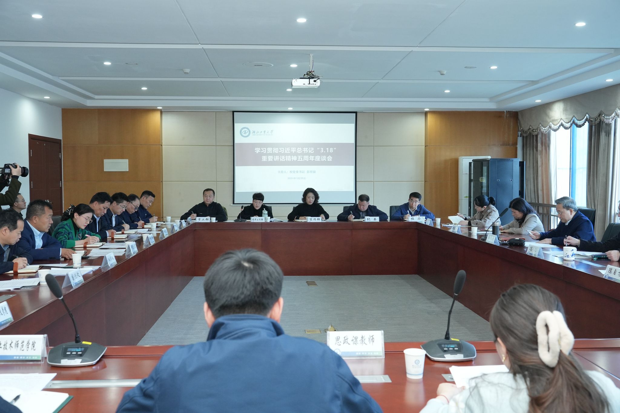 3月28日下午,校党委理论学习中心组举行2024年第3次(扩大)学习暨学习贯彻习近平总书记“3.18”重要讲话精神五周年座谈会。校党委书记彭育园主持会议并讲话,在家校领导、党委常委出席会议。