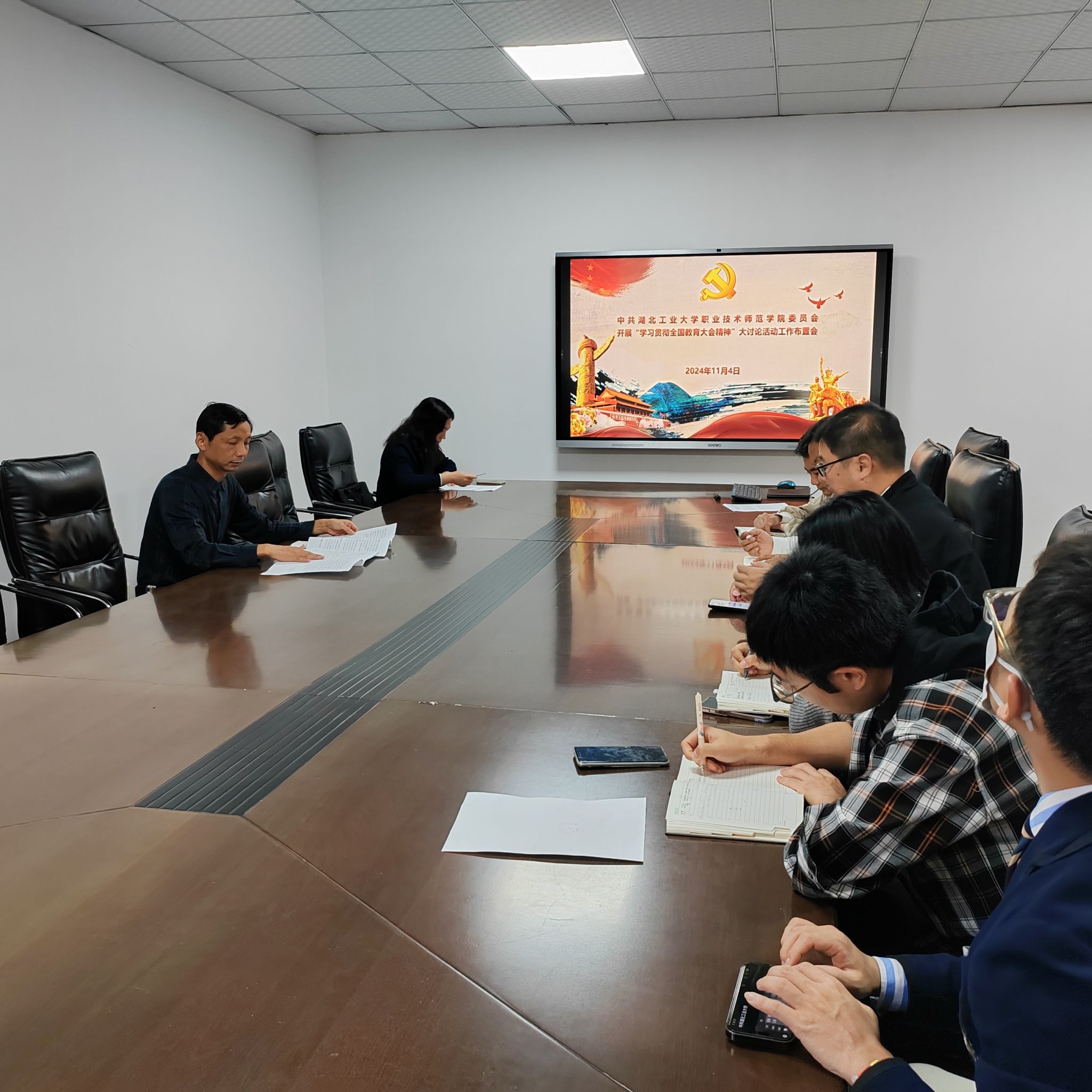 11月4日上午,职业技术师范学院党政联席会专题研究部署“学习贯彻全国教育大会精神”大讨论活动。下午学院在二楼会议室召开“学习贯彻全国教育大会精神”大讨论活动动员部署会。