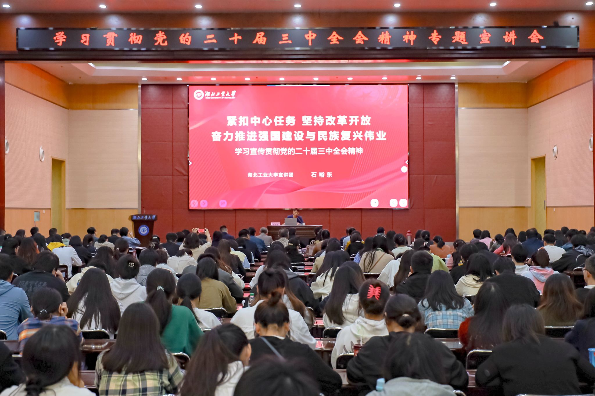 宣讲会上,石裕东以《紧扣中心任务,坚持改革开放,奋力推进强国建设与民族复兴伟业》为题,从深刻领会全会的重大意义、深入领会习近平总书记在全会上的重要讲话精神、全面准确理解《决定》提出的进一步全面深化改革重大举措、全力以赴推动全会精神在学校落地见效等四个板块,对党的二十届三中全会精神作了全面宣讲和深入阐释。