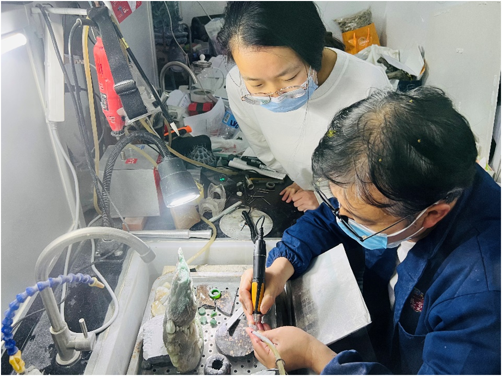 张卓雅介绍,学校的玉雕实验室从去年开始投入使用,当时是大三下学期,她们成为第一批上这门专业课的学生,“虽然接触时间不长,但这门课刚一结课,我们就敲定了毕业设计方向,一是喜爱,二是想挑战自己,让大学生活结束得更有仪式感。”
