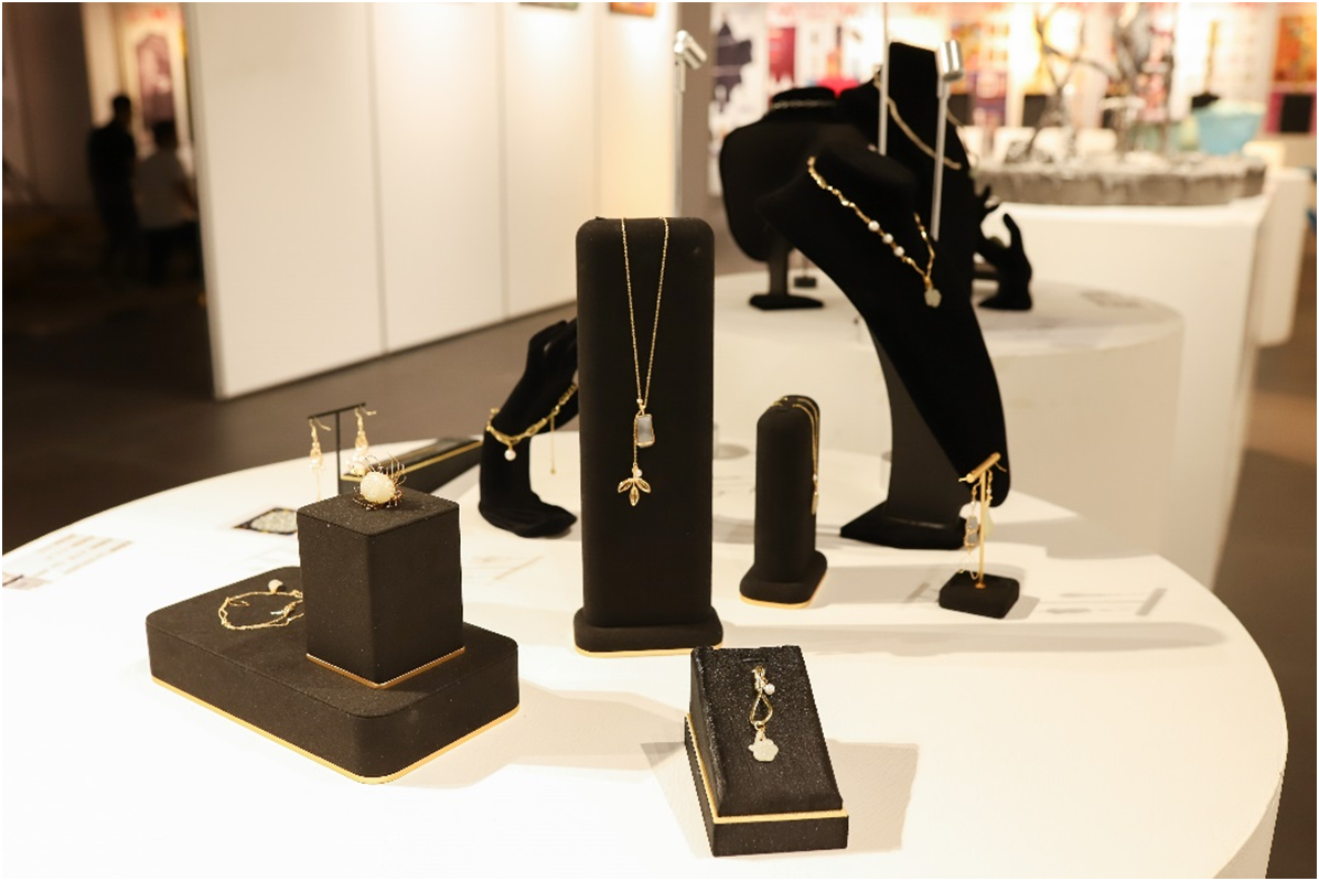 项圈、项链、手环、耳坠、发簪、胸针,这十余件玉雕首饰是张卓雅、李念文、拓跋兰君三名毕业生在老师黄雄指导下,学习半年后的首次展出成果。很巧的是,今年是学院第一年将玉雕作为毕业作品选题之一。“我们算是本专业毕业生中玉雕方向的‘开拓者’了。”张卓雅笑着说。