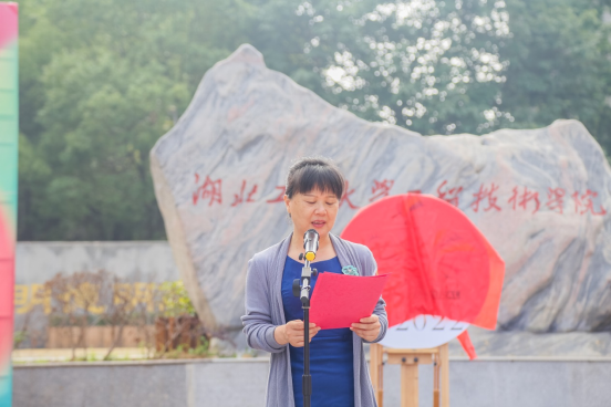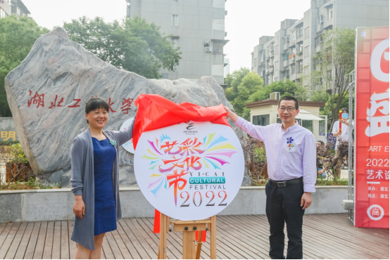 黄祖莉和张业鹏共同为2022年 “艺彩文化节”揭幕,张业鹏宣布湖北工业大学工程技术学院艺术设计系2022届毕业设计作品展开幕。