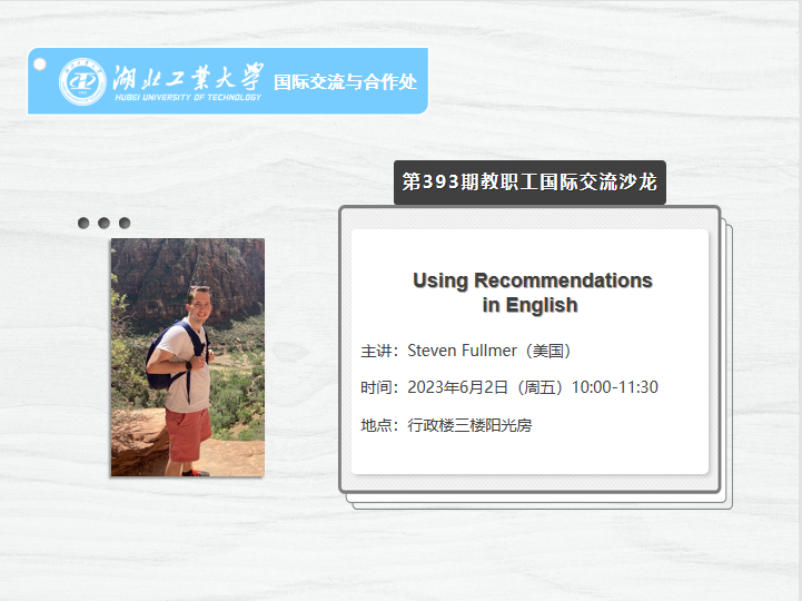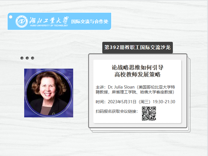 加群时请备注“单位+姓名+工号”,进群后及时按“学院+姓名”格式更名,并添加“湖工大国际”微信公众号,关注相关通知。在不影响正常工作的原则下,全校教职工均可灵活参加沙龙,本沙龙不收取任何费用。