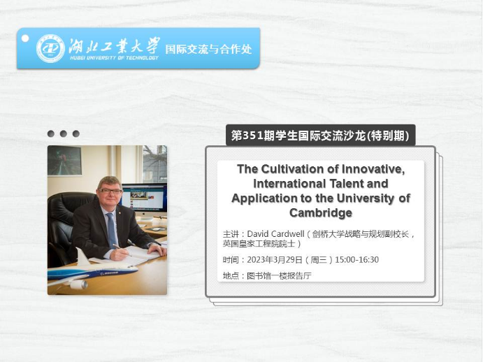 主题:The Cultivation of Innovative, International Talent and Application to the University of Cambridge