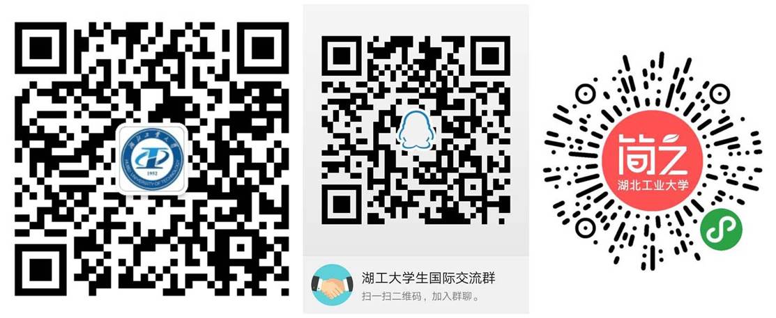 请关注微信公众号“湖工大国际”,加入“湖工大学生出国交流群”QQ群 125865363,并添加湖北工业大学国际化发展信息平台微信小程序“简之”(二维码如下),关注相关通知。