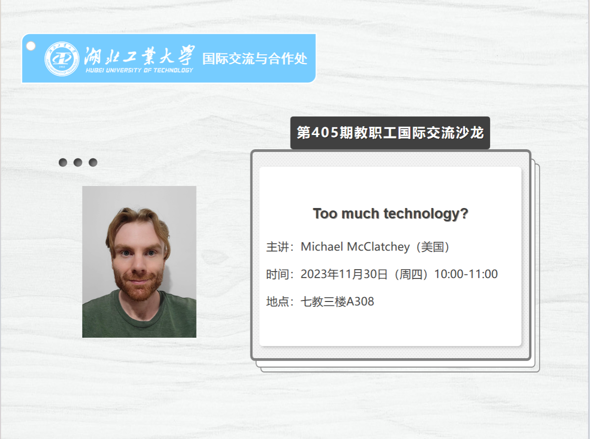 加群时请备注“单位+姓名+工号”,进群后及时按“学院+姓名”格式更名,并添加“湖工大国际”微信公众号,关注相关通知。在不影响正常工作的原则下,全校教职工均可灵活参加沙龙,本沙龙不收取任何费用。