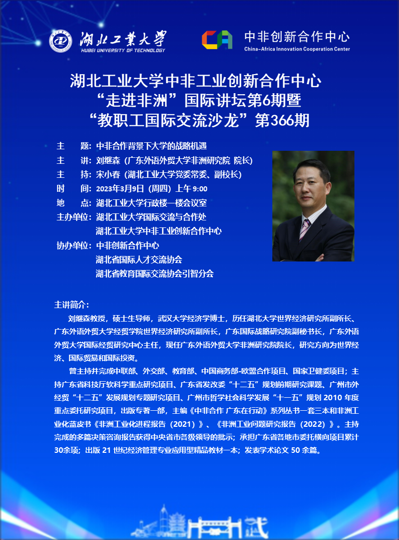 湖北工业大学中非工业创新合作中心“走进非洲”国际讲坛第6期暨第366期“教职工国际交流沙龙”