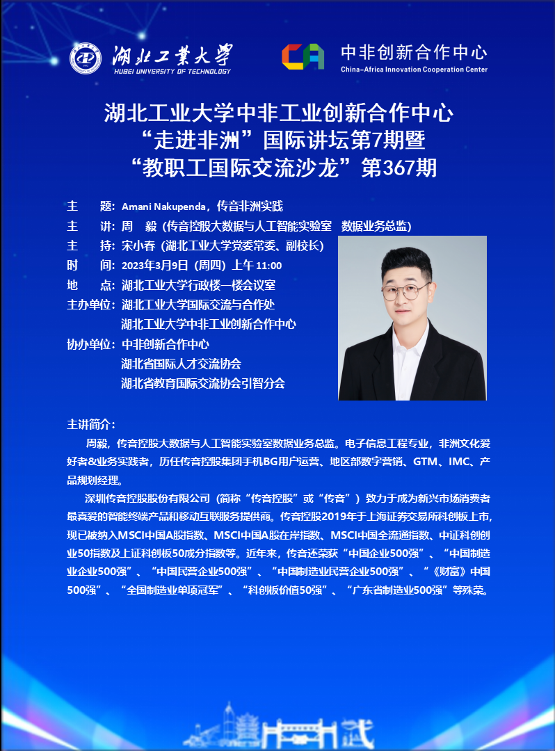 湖北工业大学中非工业创新合作中心“走进非洲”国际讲坛第7期暨第367期“教职工国际交流沙龙”